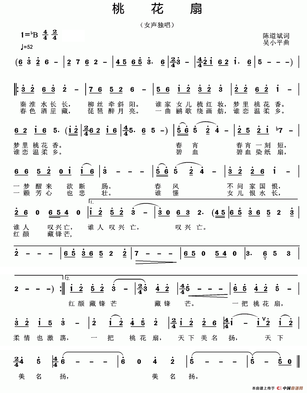 一把桃花扇,柔情也激荡,一把桃花扇,天下美名扬,天下美名扬,美名扬。