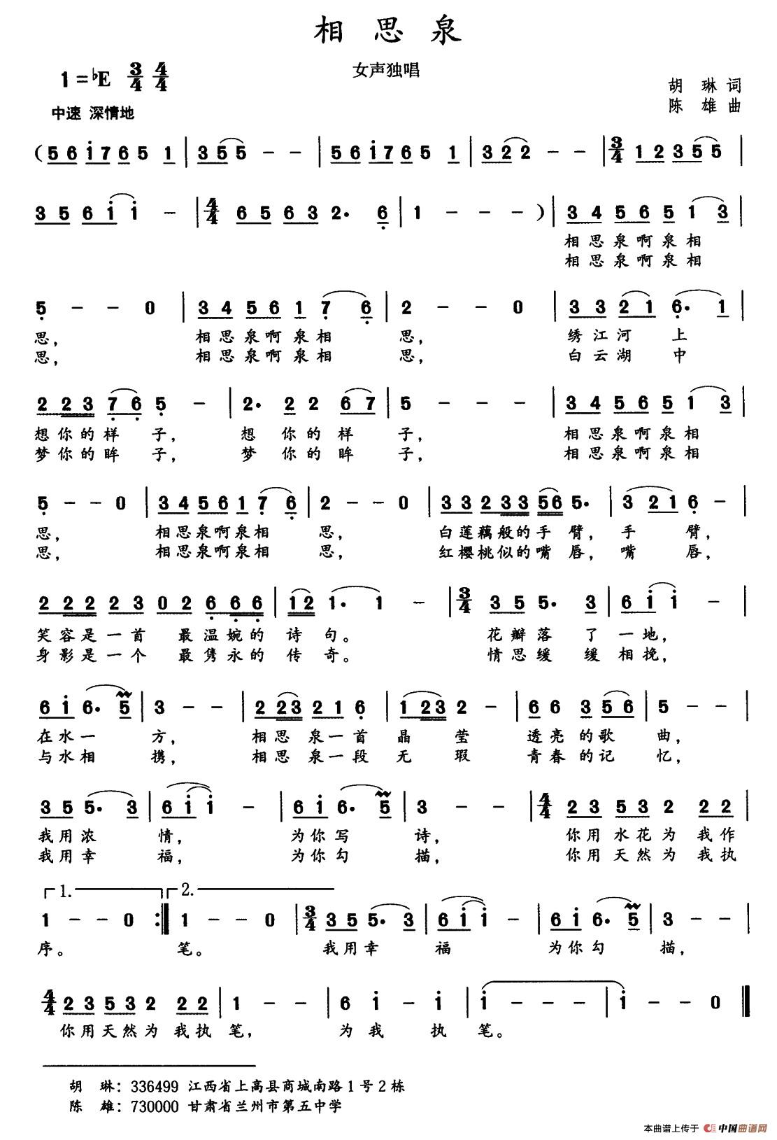 关于《相思泉》曲谱的评论