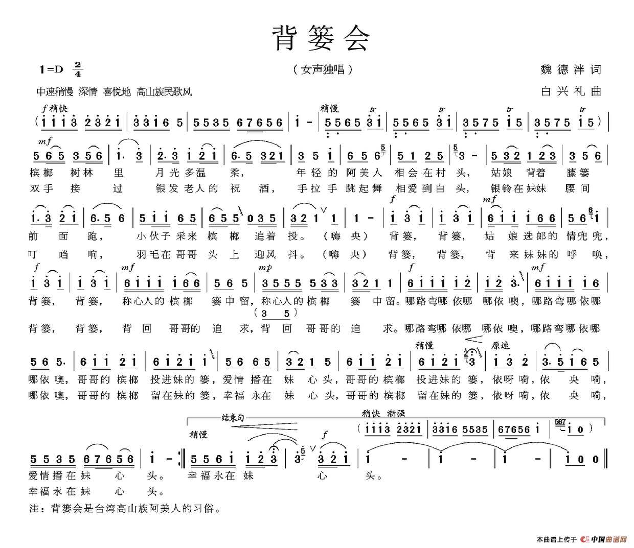 关于《背篓会》曲谱的评论