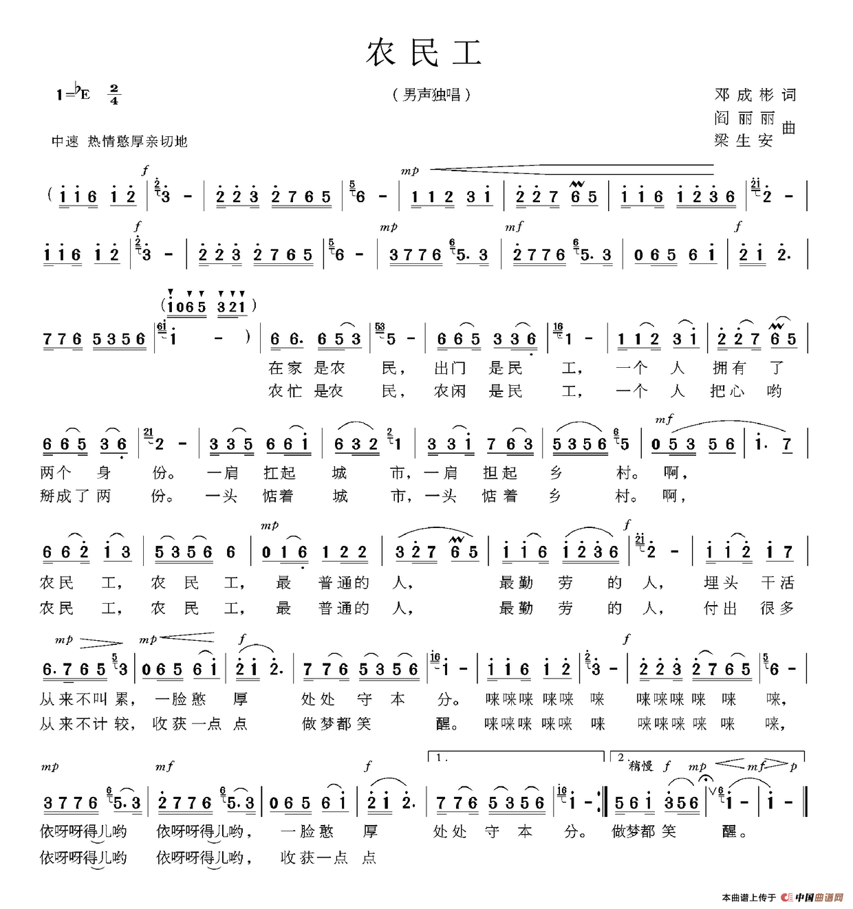农民工(邓成彬词 阎丽丽 梁生安曲)