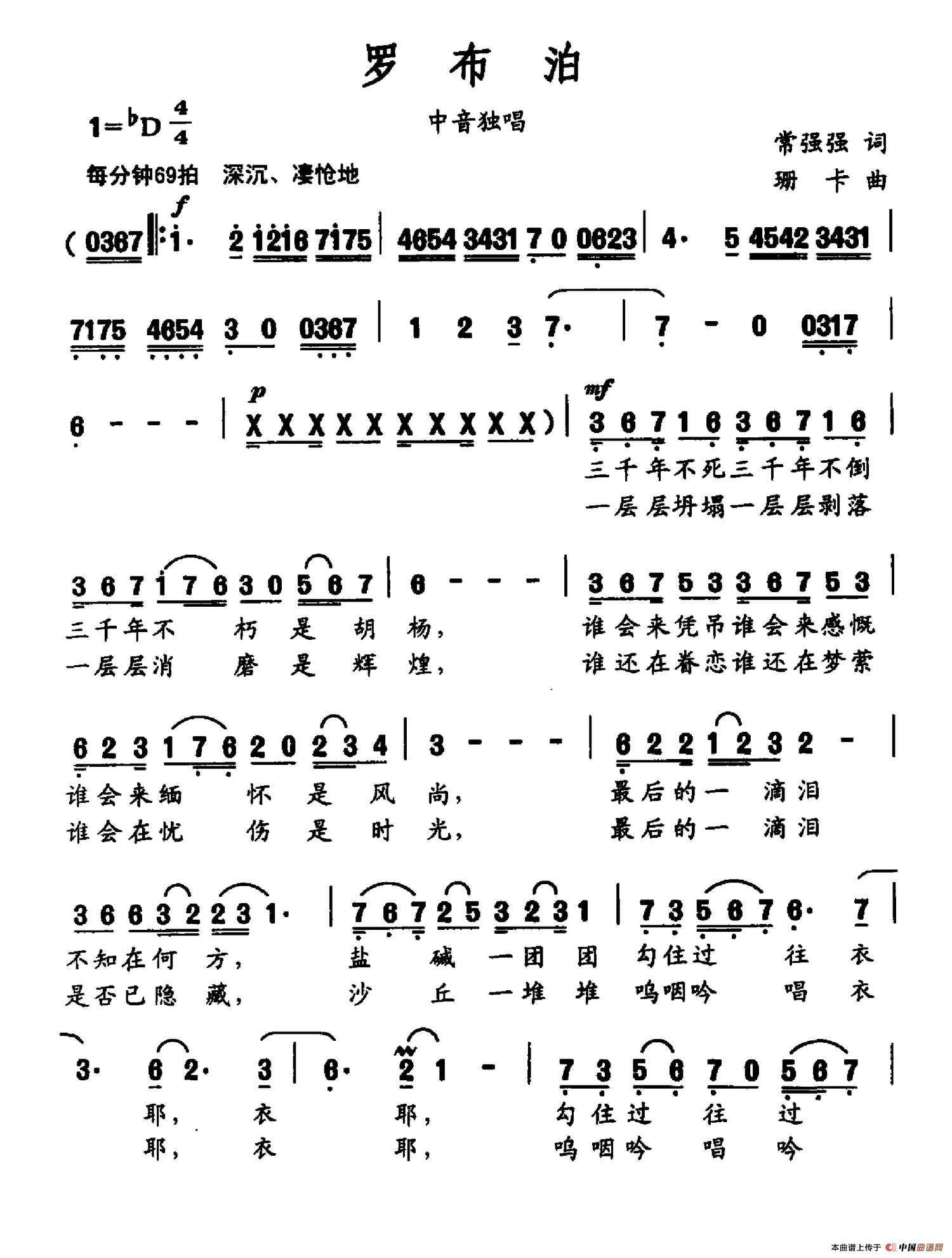 关于《罗布泊》曲谱的评论