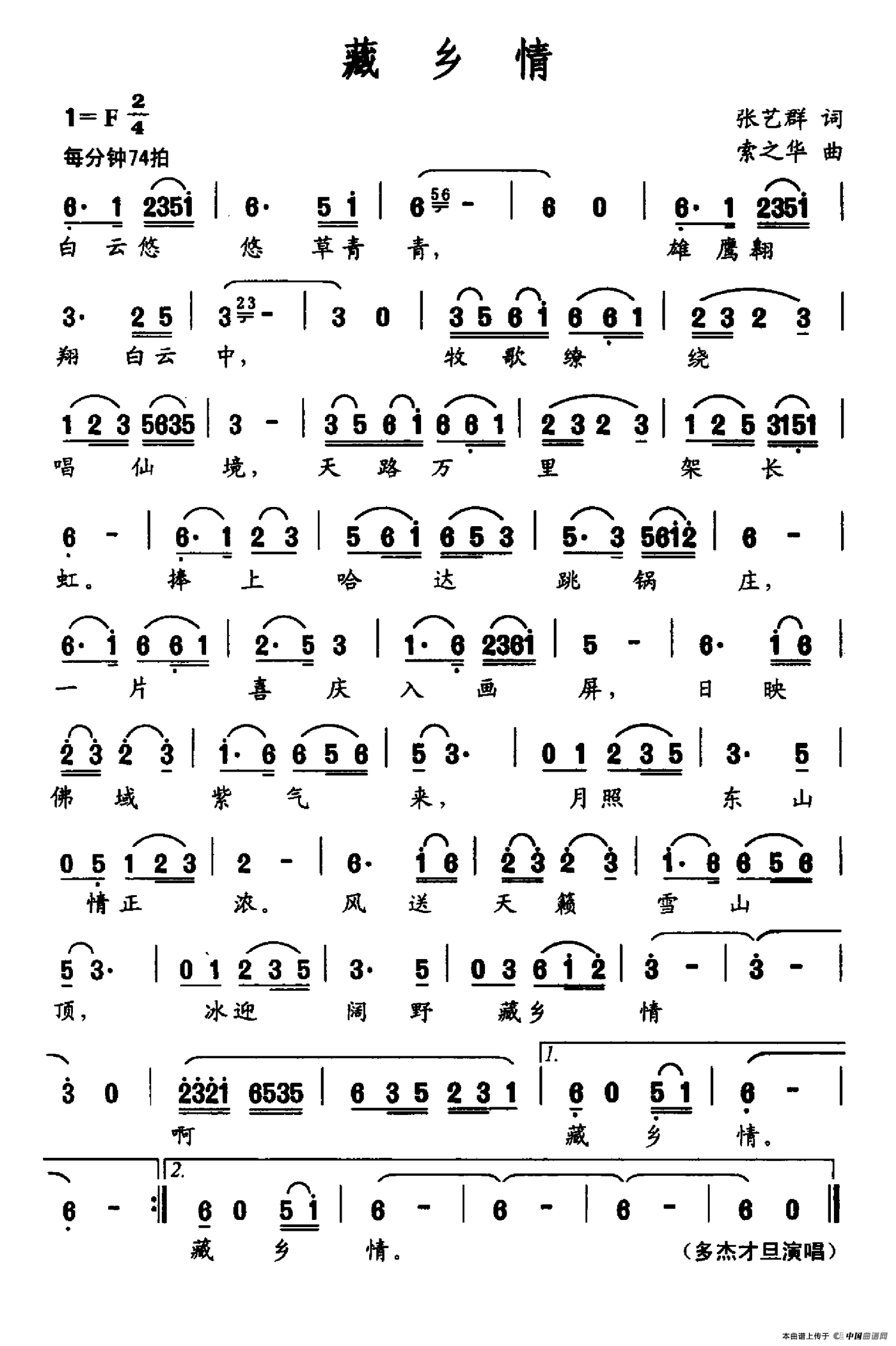 关于《藏乡情》曲谱的评论
