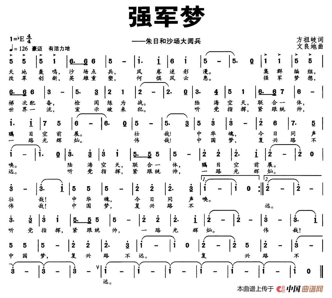 关于《强军梦》曲谱的评论