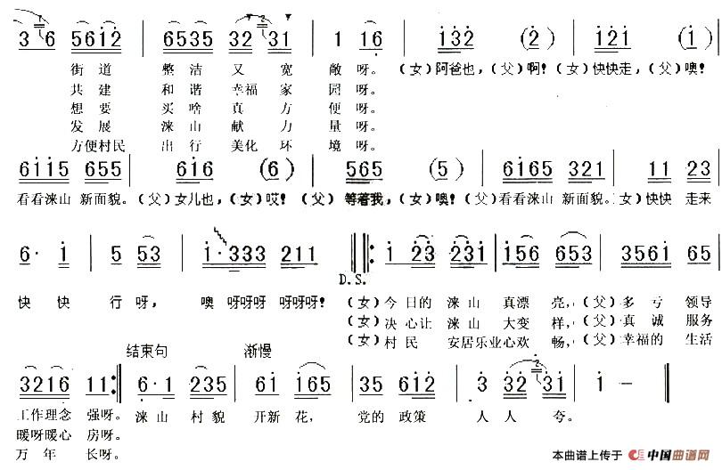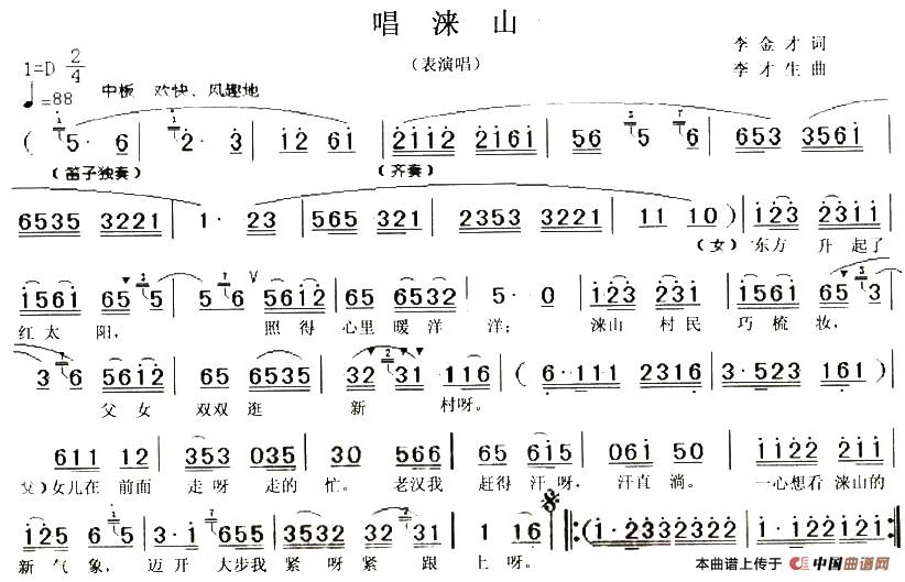 关于《唱涞山》曲谱的评论