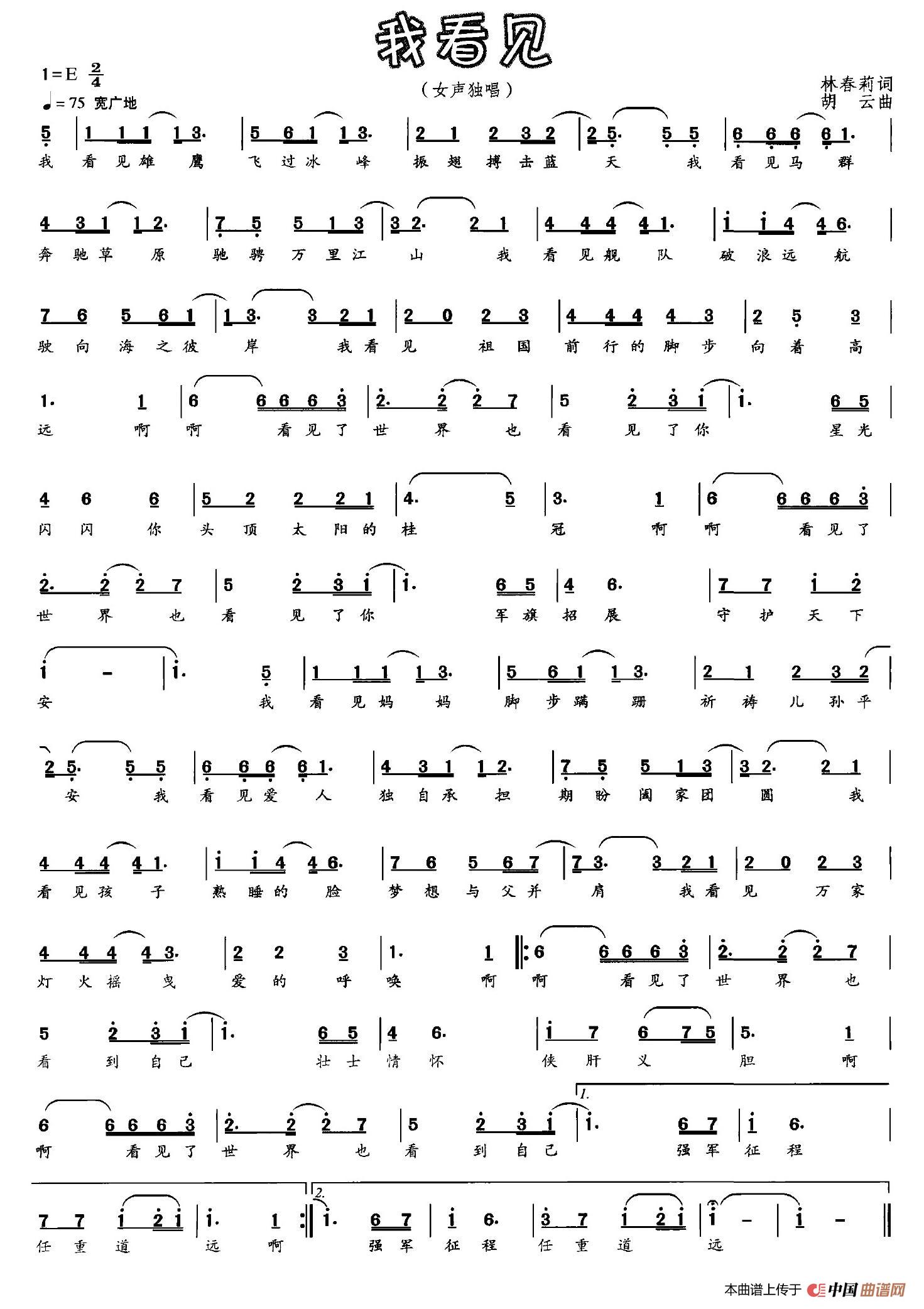 作词:林春莉 作曲:胡云 来源:《中国曲谱网》 上传:editor1