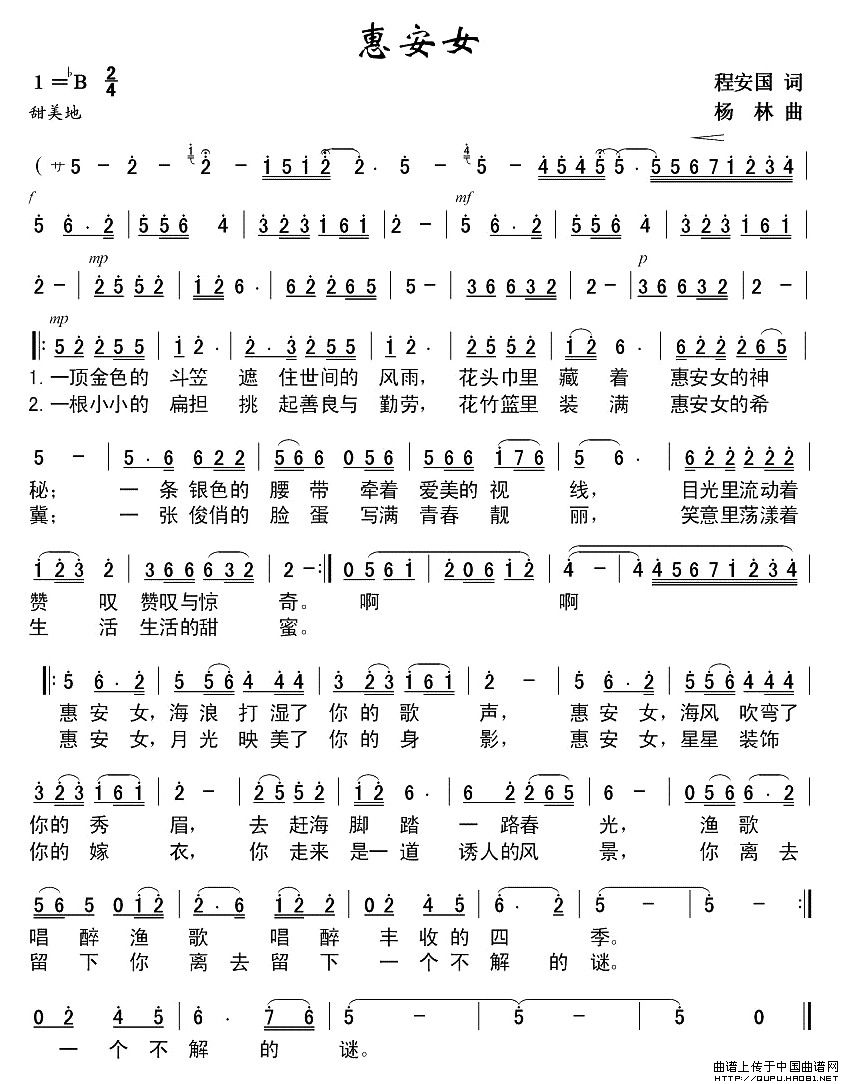 关于《惠安女》曲谱的评论