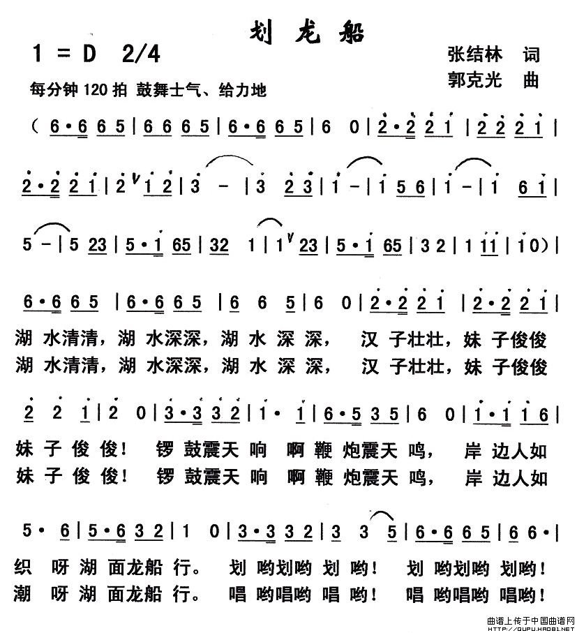 关于《划龙船》曲谱的评论