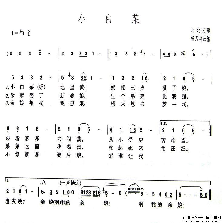 小白菜(河北民歌、5个版本)
