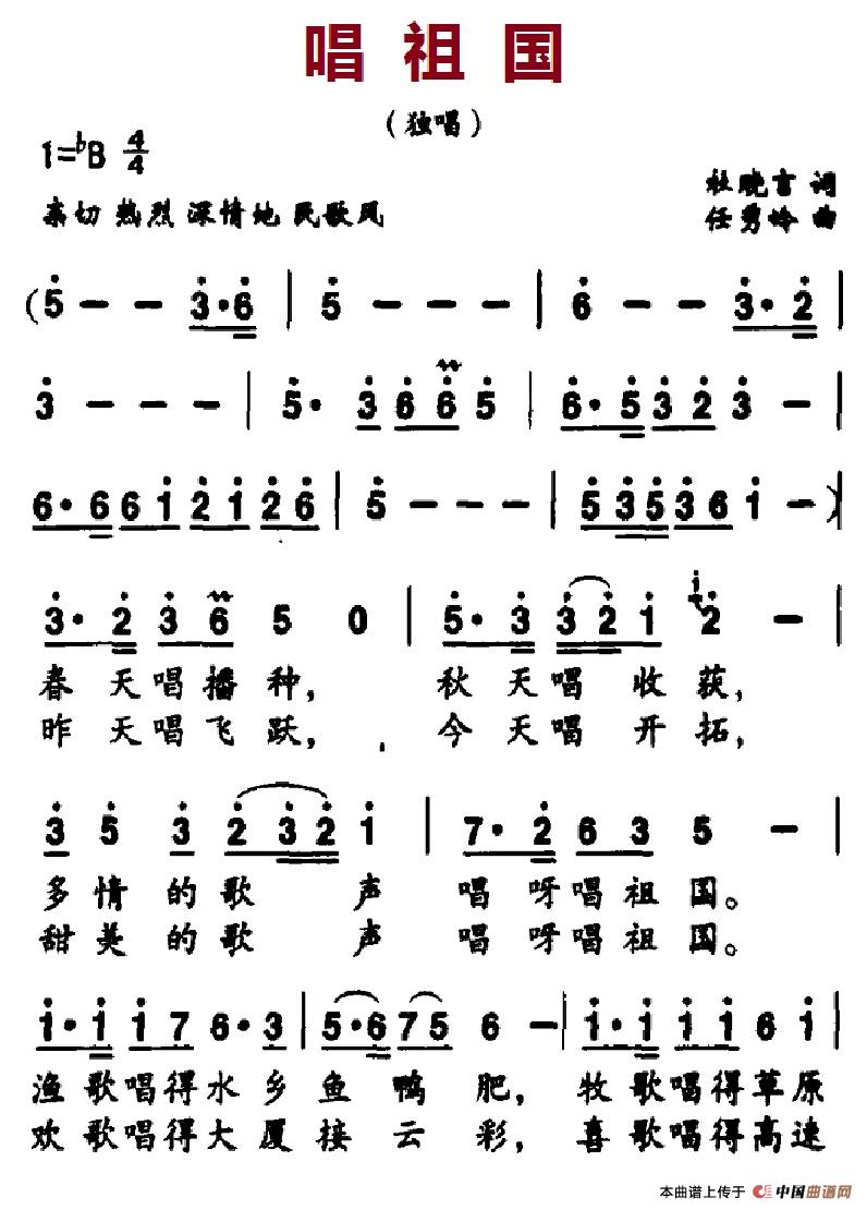 当前位置: 首页 民歌曲谱 三字歌名 唱祖国(杜晓言词 任秀岭曲)