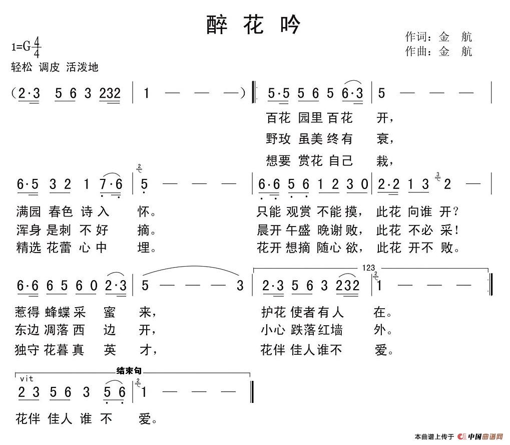 关于《醉花吟》曲谱的评论