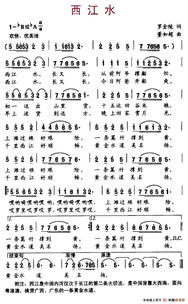 关于《西江水》曲谱的评论