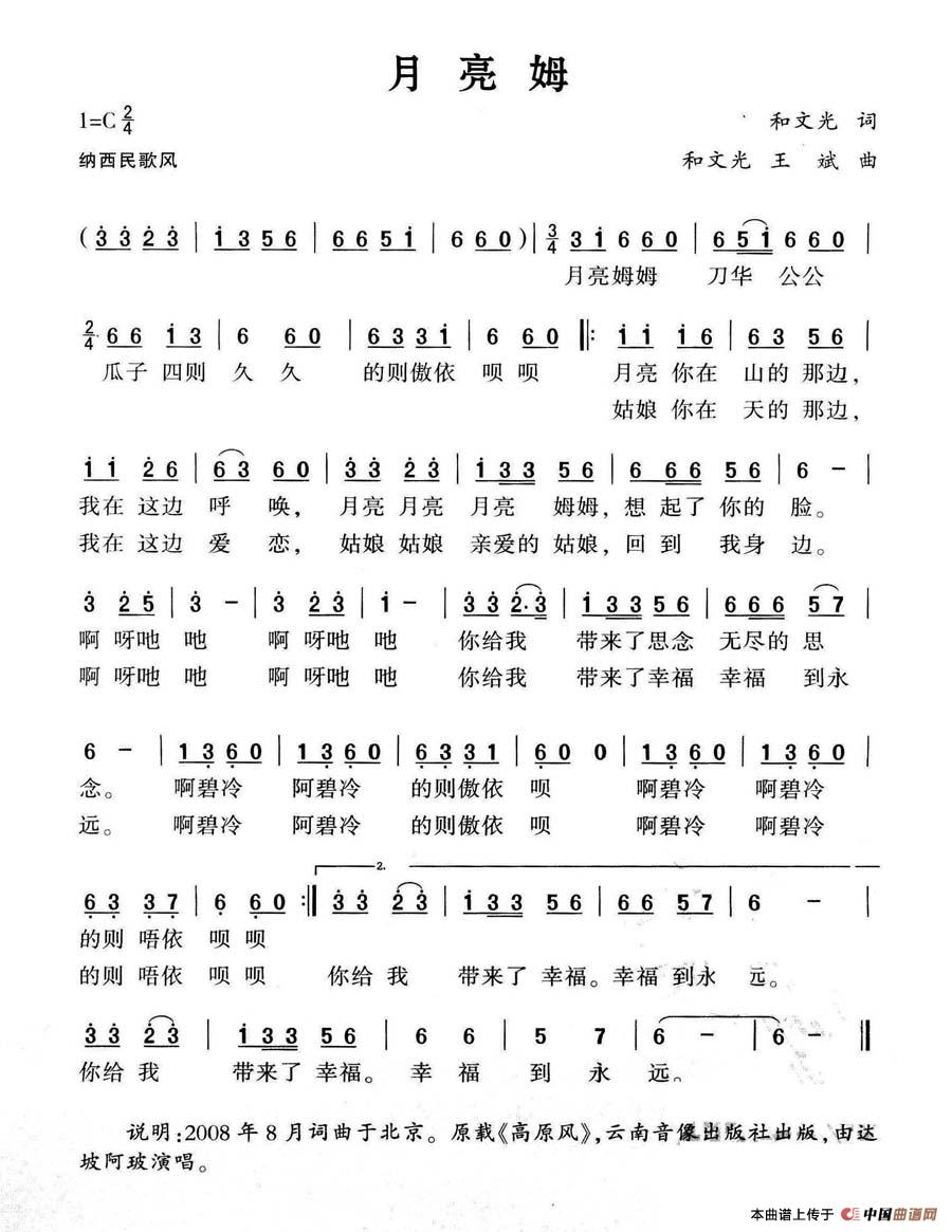 关于《月亮姆》曲谱的评论
