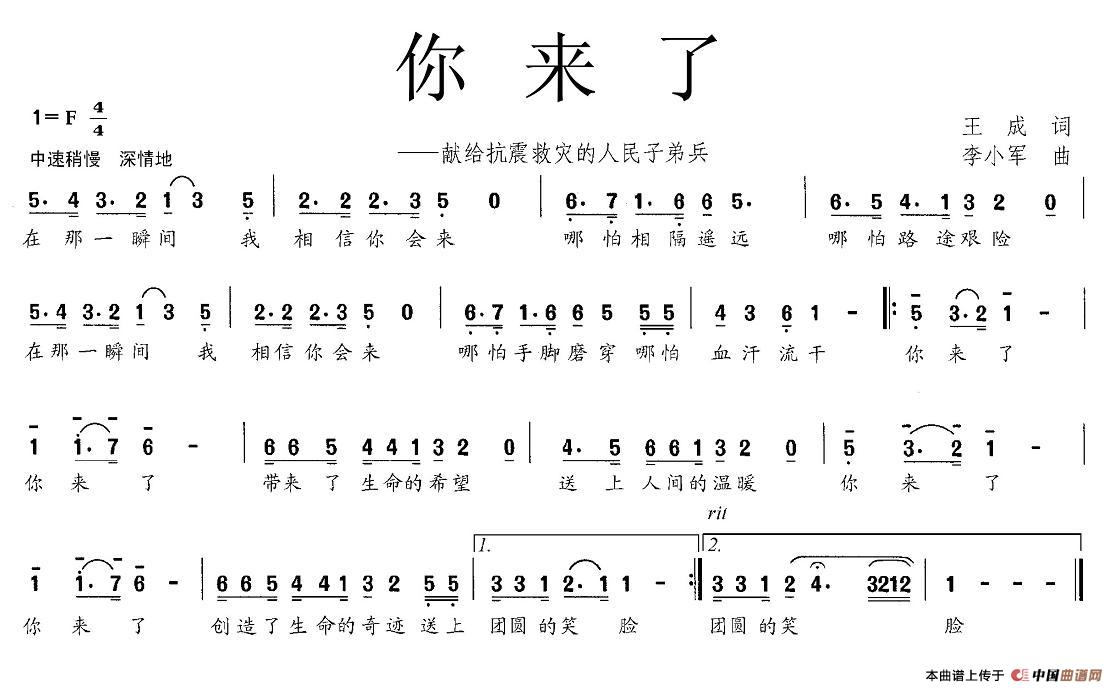 关于《你来了》曲谱的评论