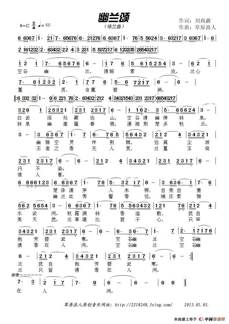 关于《幽兰颂》曲谱的评论