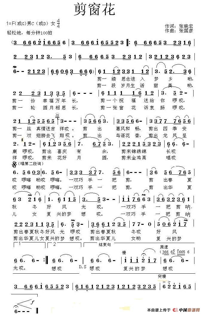 剪窗花(张晓宏词 张国彦曲)(1)_原文件名:1.jpg