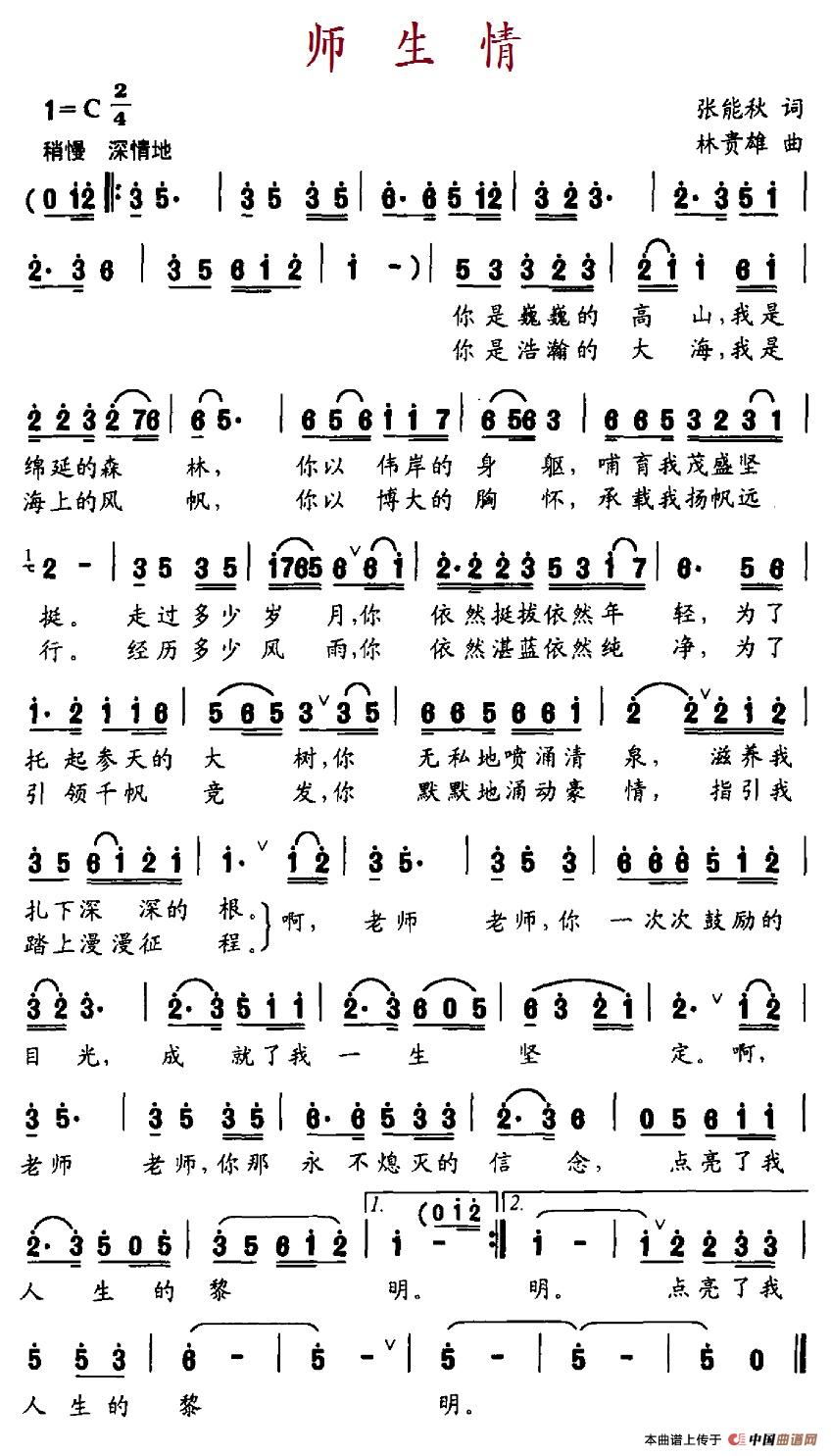 当前位置: 首页 民歌曲谱 三字歌名 师生情(张能秋词 林贵雄曲)
