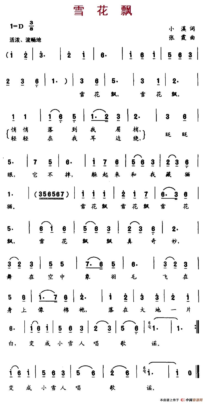 当前位置: 首页 民歌曲谱 三字歌名 雪花飘(小溪词 张霞曲)