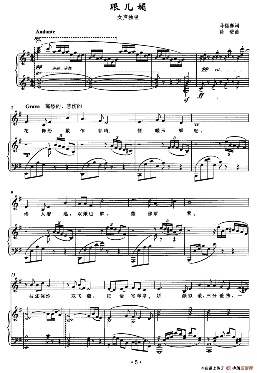 眼儿媚(马锡骞词 徐进曲、正谱)