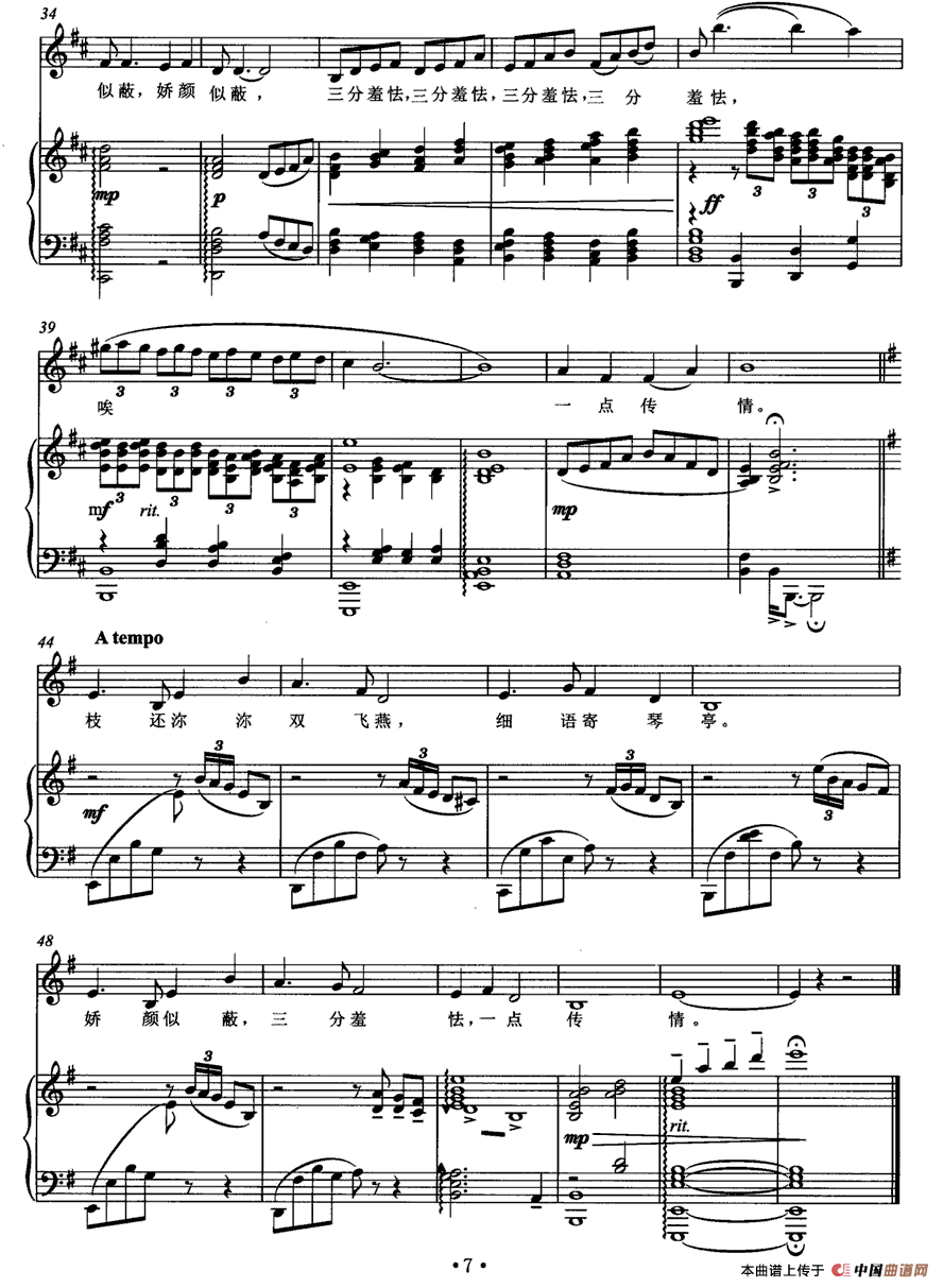 提示:在曲谱图片上单击右键,选择“图片另存为...”即可将曲谱保存到您的电脑中,打印时候可将图片插入到WORD中,调整合适大小打印即可。