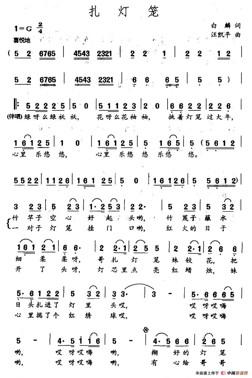 关于《扎灯笼》曲谱的评论