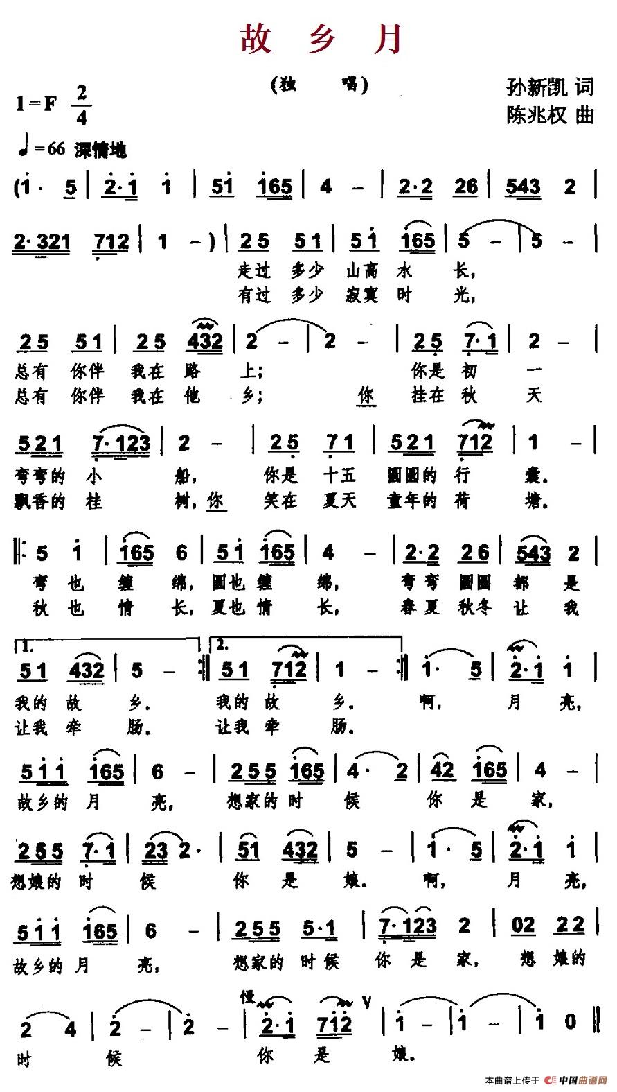 关于《故乡月》曲谱的评论