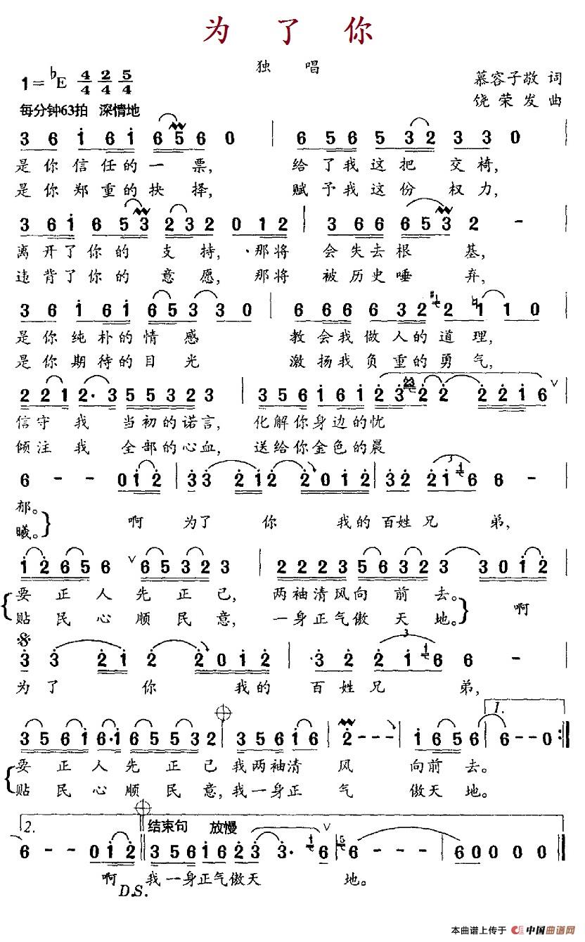 提示:在曲谱图片上单击右键,选择“图片另存为...”即可将曲谱保存到您的电脑中,打印时候可将图片插入到WORD中,调整合适大小打印即可。