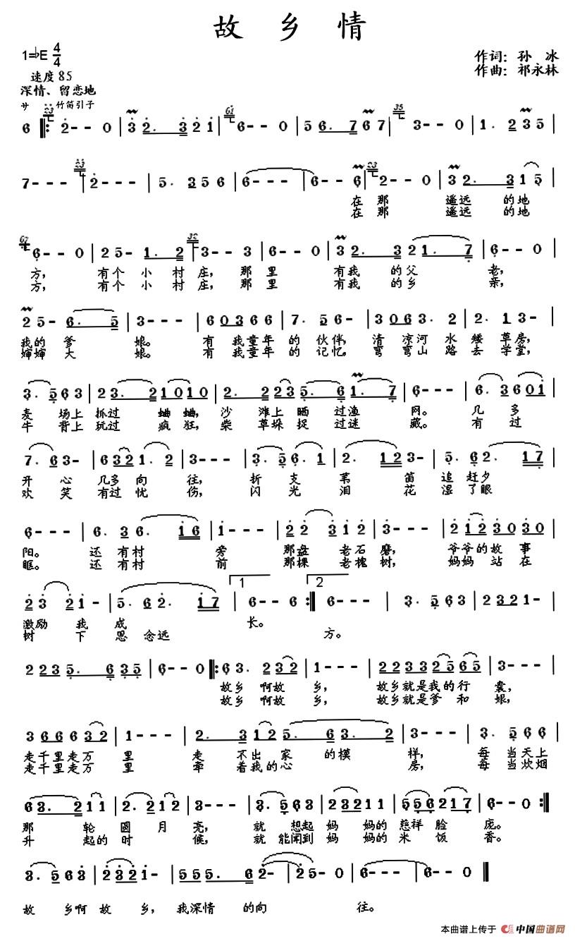 当前位置: 首页 民歌曲谱 三字歌名 故乡情(孙冰词 祁永林曲)