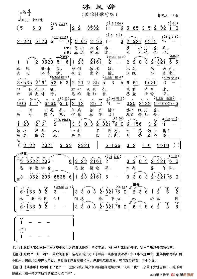 关于《冰风辞》曲谱的评论