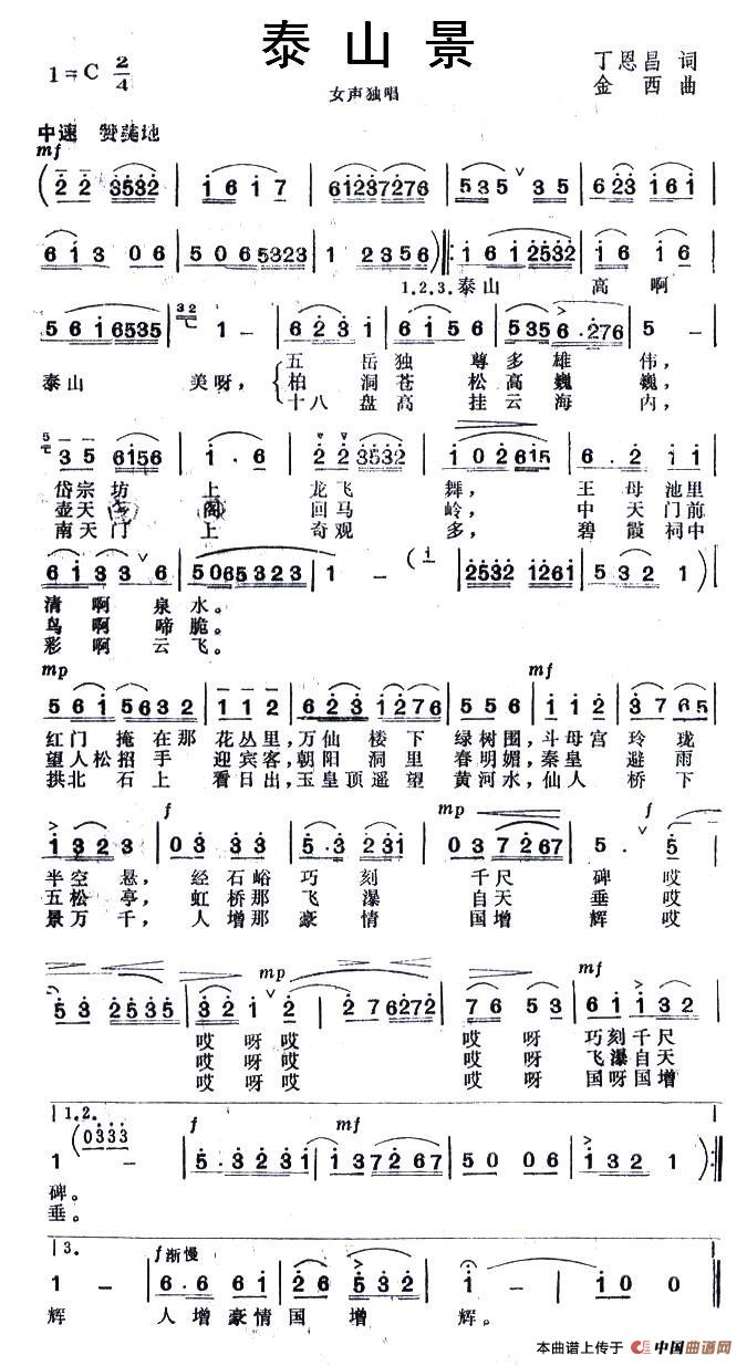 《泰山景》文本歌词
