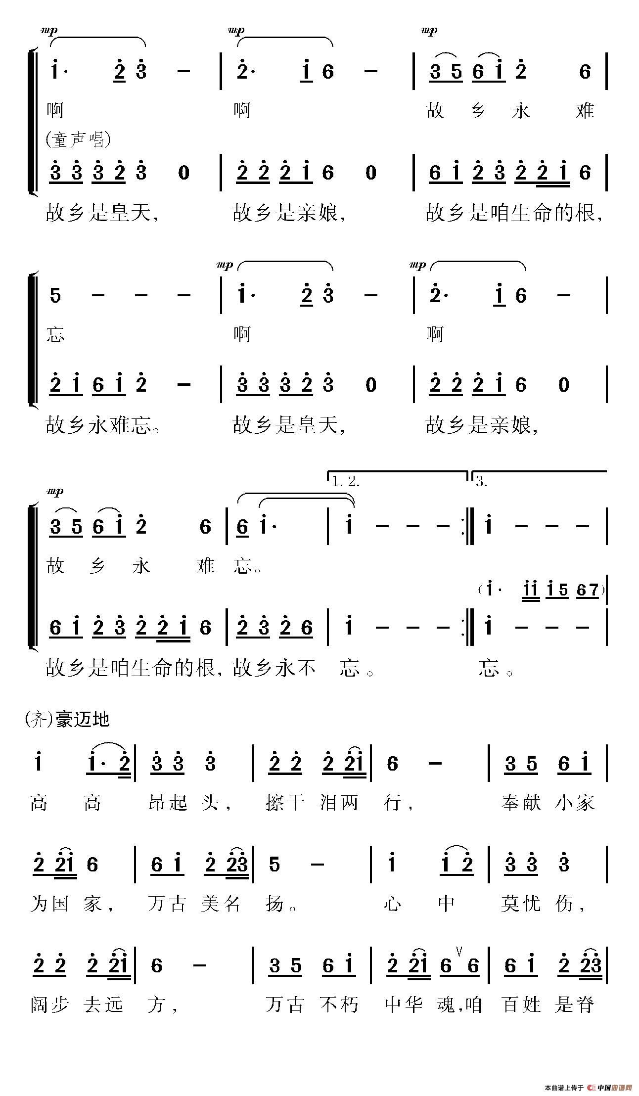 提示:在曲谱图片上单击右键,选择“图片另存为...”即可将曲谱保存到您的电脑中,打印时候可将图片插入到WORD中,调整合适大小打印即可。