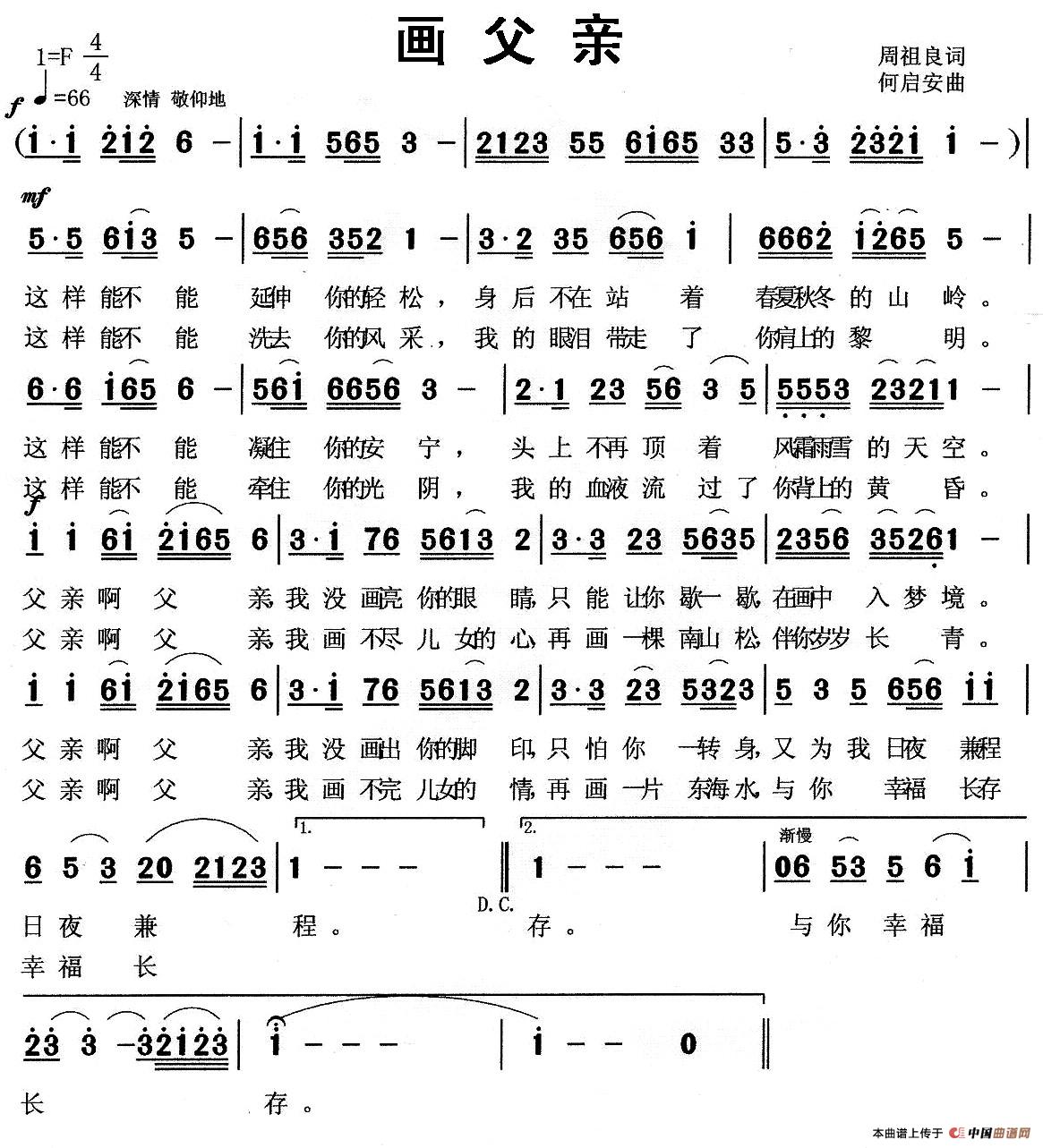 致谢:《中国曲谱网》衷心感谢作者老师馈赠原版歌谱!