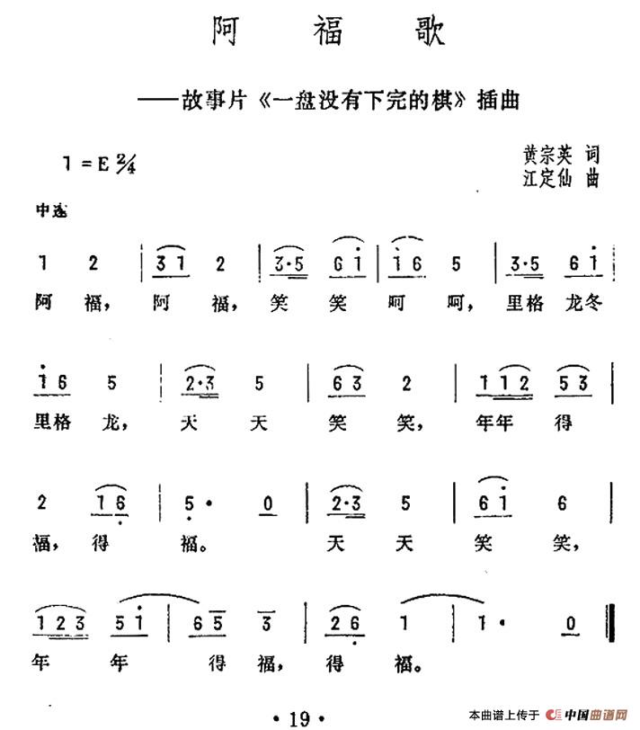 关于《阿福歌》曲谱的评论