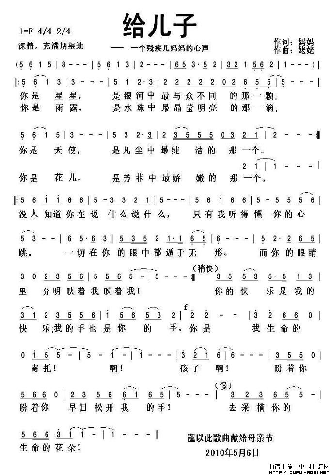 关于《给儿子——一个残疾儿妈妈的心声》曲谱的评论