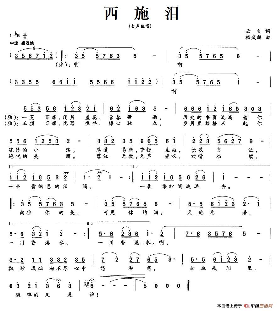 关于《西施泪》曲谱的评论