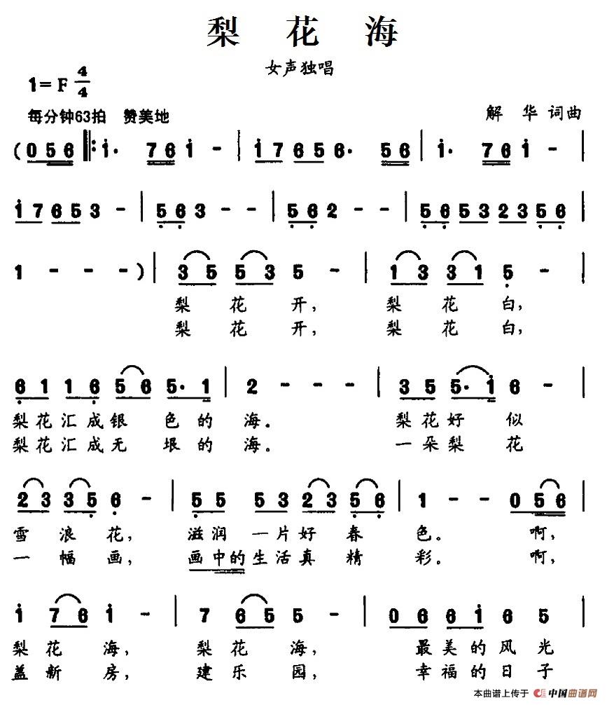 当前位置: 首页 民歌曲谱 三字歌名 梨花海(解华词 解华曲)
