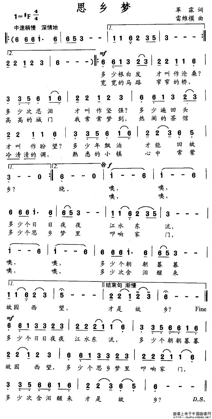 关于《思乡梦》曲谱的评论
