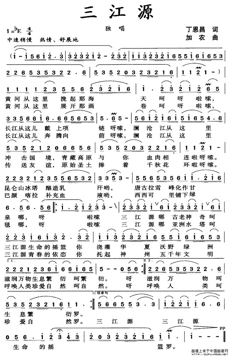 当前位置: 首页 民歌曲谱 三字歌名 三江源(丁恩昌词 加农曲)