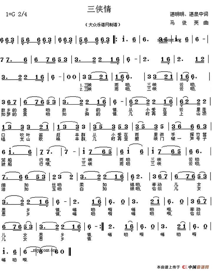 关于《三峡情》曲谱的评论