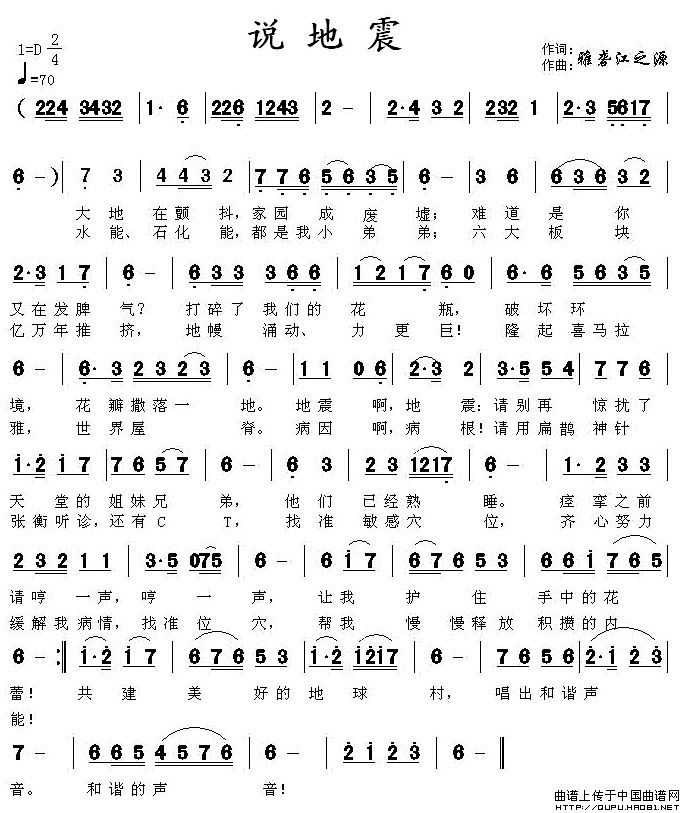 关于《说地震》曲谱的评论