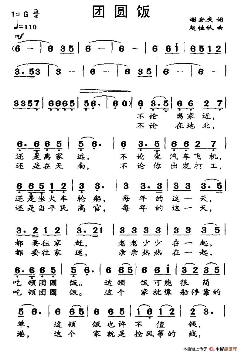 当前位置: 首页 民歌曲谱 三字歌名 团圆饭