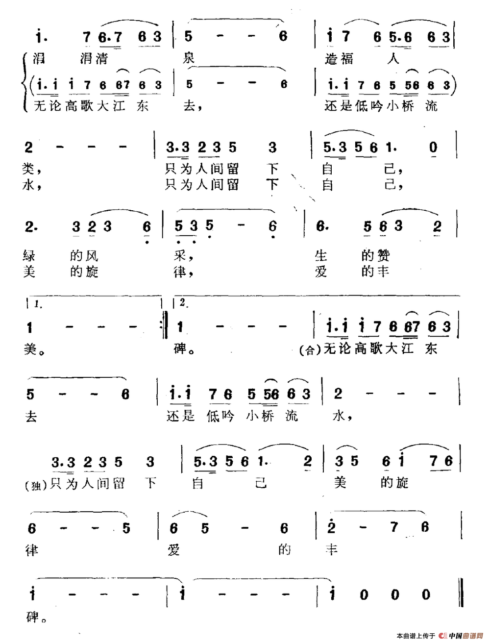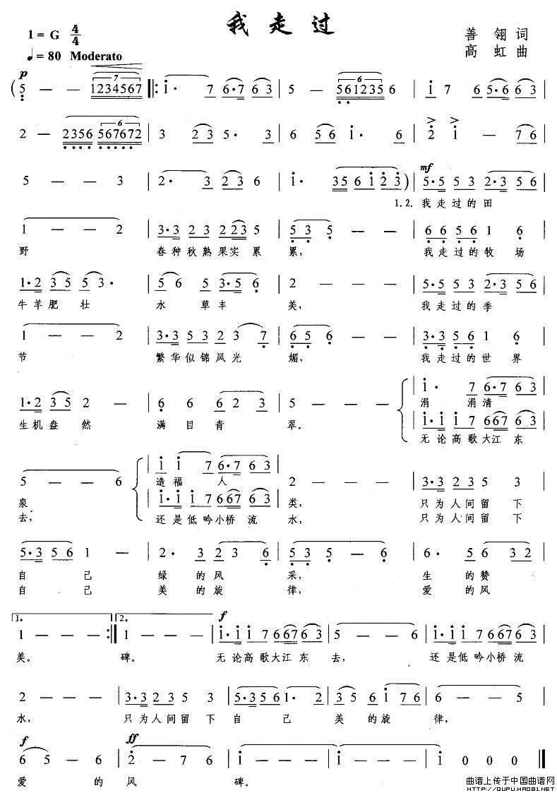关于《我走过》曲谱的评论