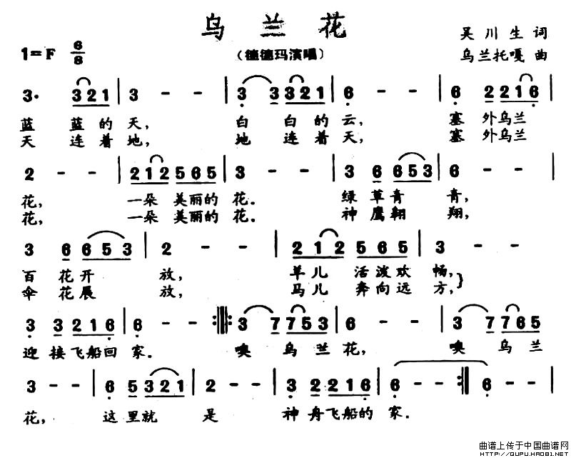 关于《乌兰花》曲谱的评论