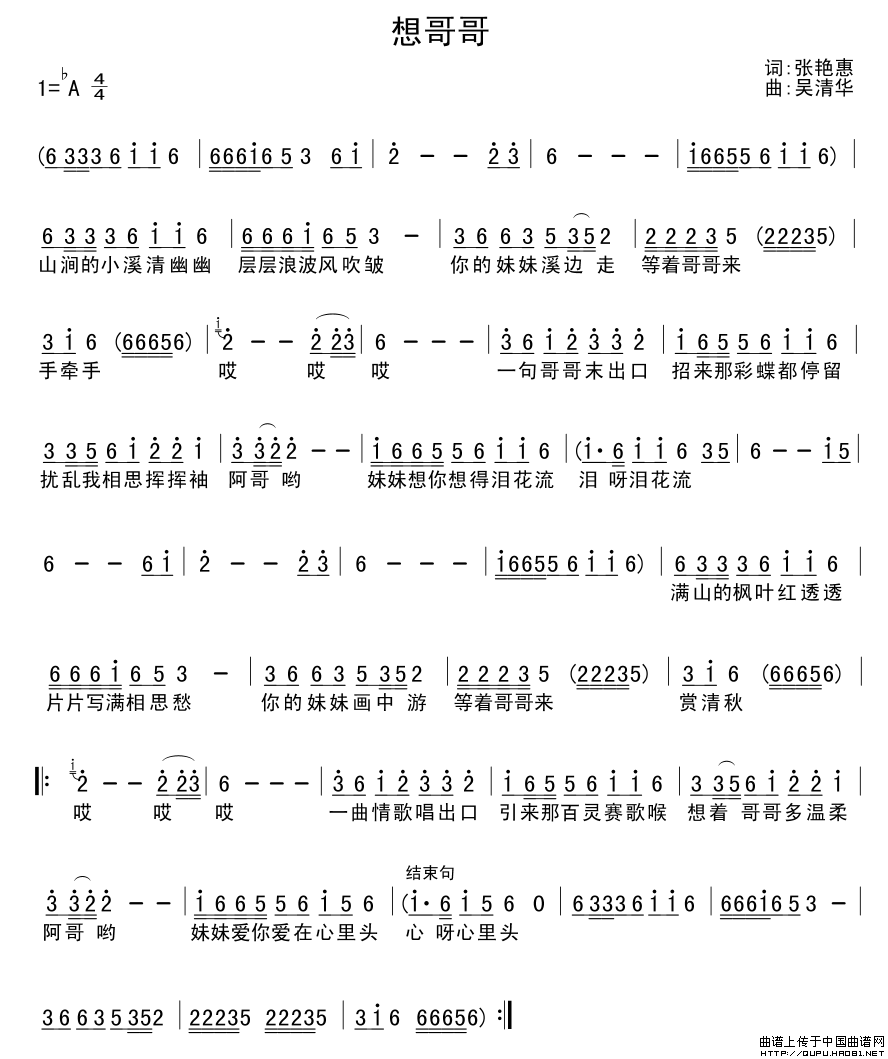关于《想哥哥》曲谱的评论