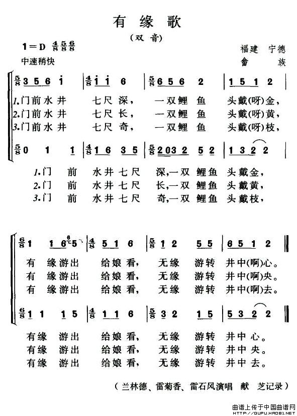 关于《有缘歌》曲谱的评论