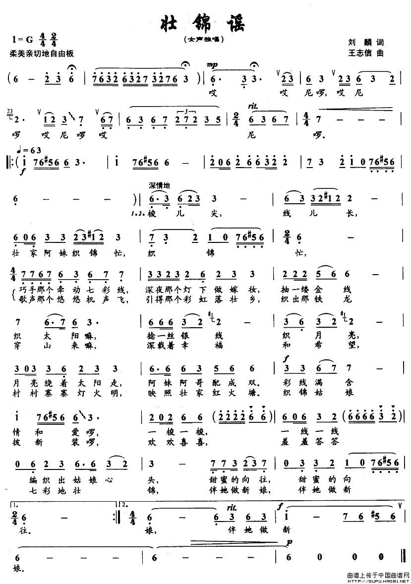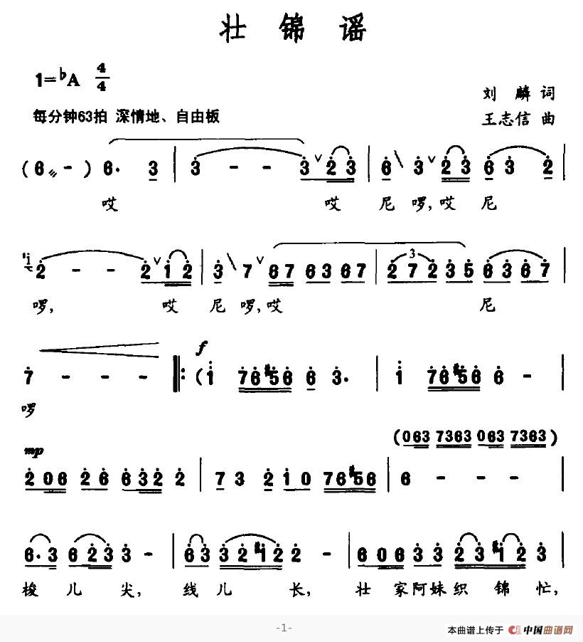 关于《壮锦谣》曲谱的评论