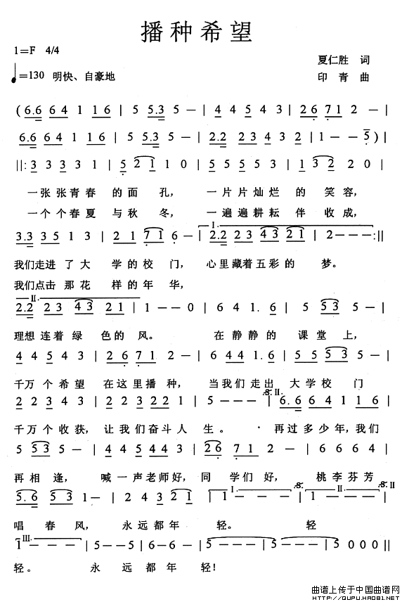 这首歌曲是2001年为庆祝莱阳农学院五十周年校庆时而作。由烟台电视台副台长夏仁胜先生作词,著名作曲家印青作曲,歌星戴娆演唱。