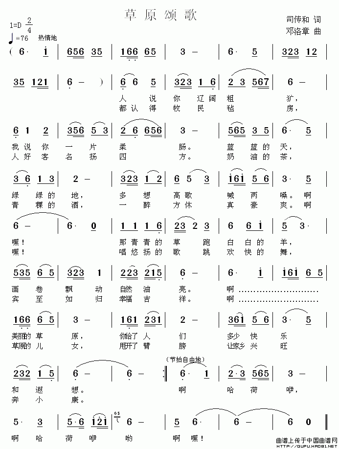 关于《草原颂歌》曲谱的评论