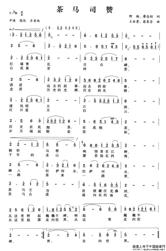 关于《茶马司赞》曲谱的评论