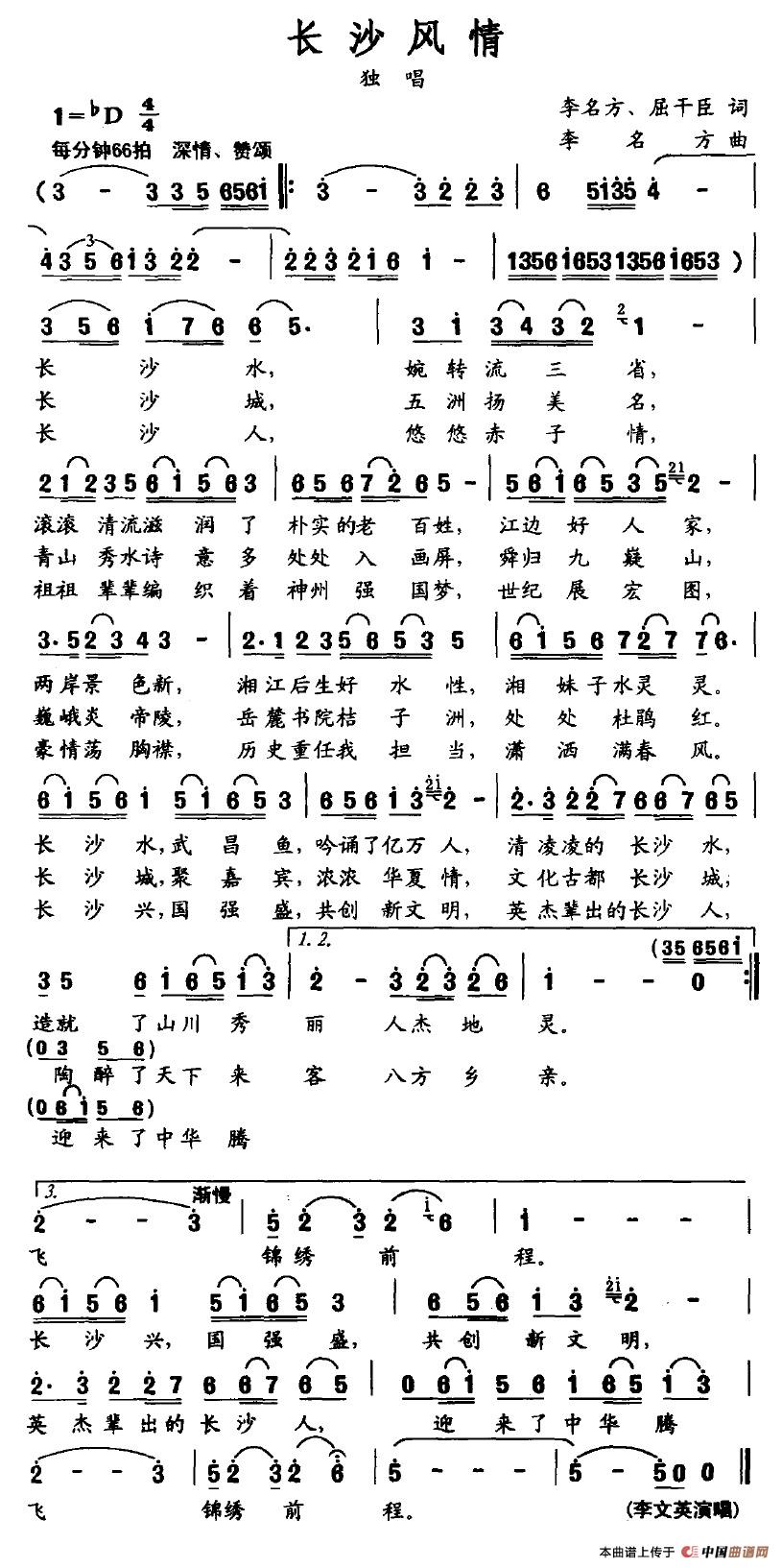 关于《长沙风情》曲谱的评论