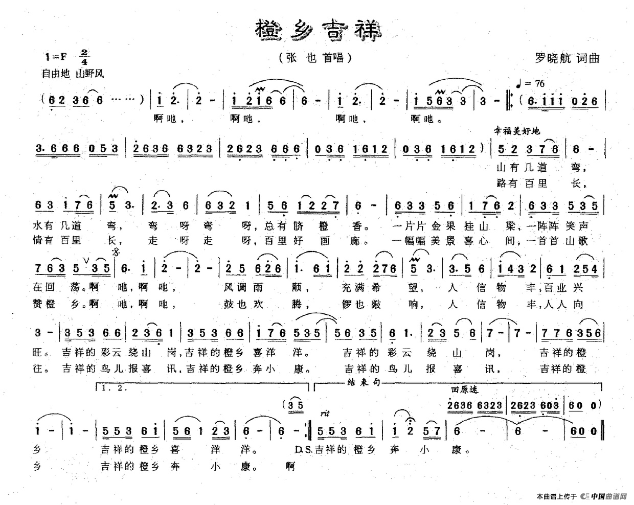 关于《橙乡吉祥》曲谱的评论